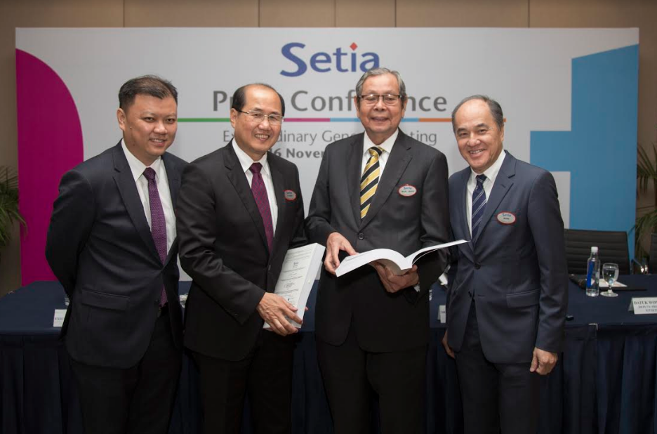 Top management of S P Setia Berhad from L-R : Choy Kah Yew (Executive Vice President & CFO), Dato’ Khor Chap Jen (President & CEO), Tan Sri Dato’ Seri Dr. Wan Mohd Zahid (Chairman) and Datuk Wong Tuck Wai (Deputy President & COO) at the press conference after the EGM held this morning. SETIA ALAM:…